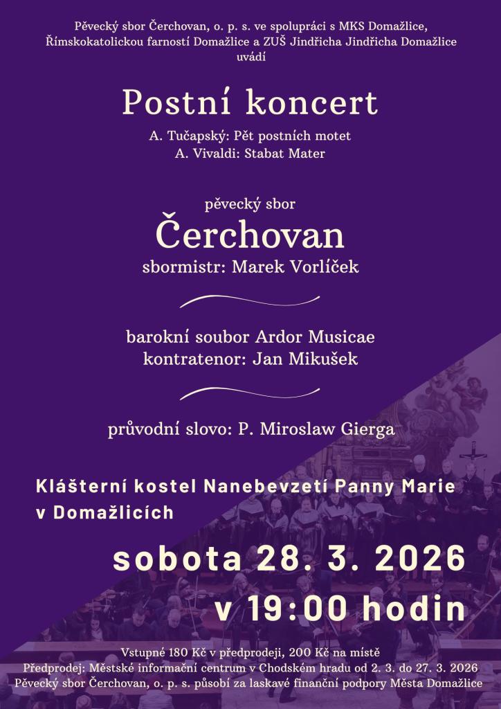 Zveme Vás na Postní koncert pěveckého sboru Čerchovan, hosté: kontratenor Jan Mikušek, barokní soubor Ardor musicae