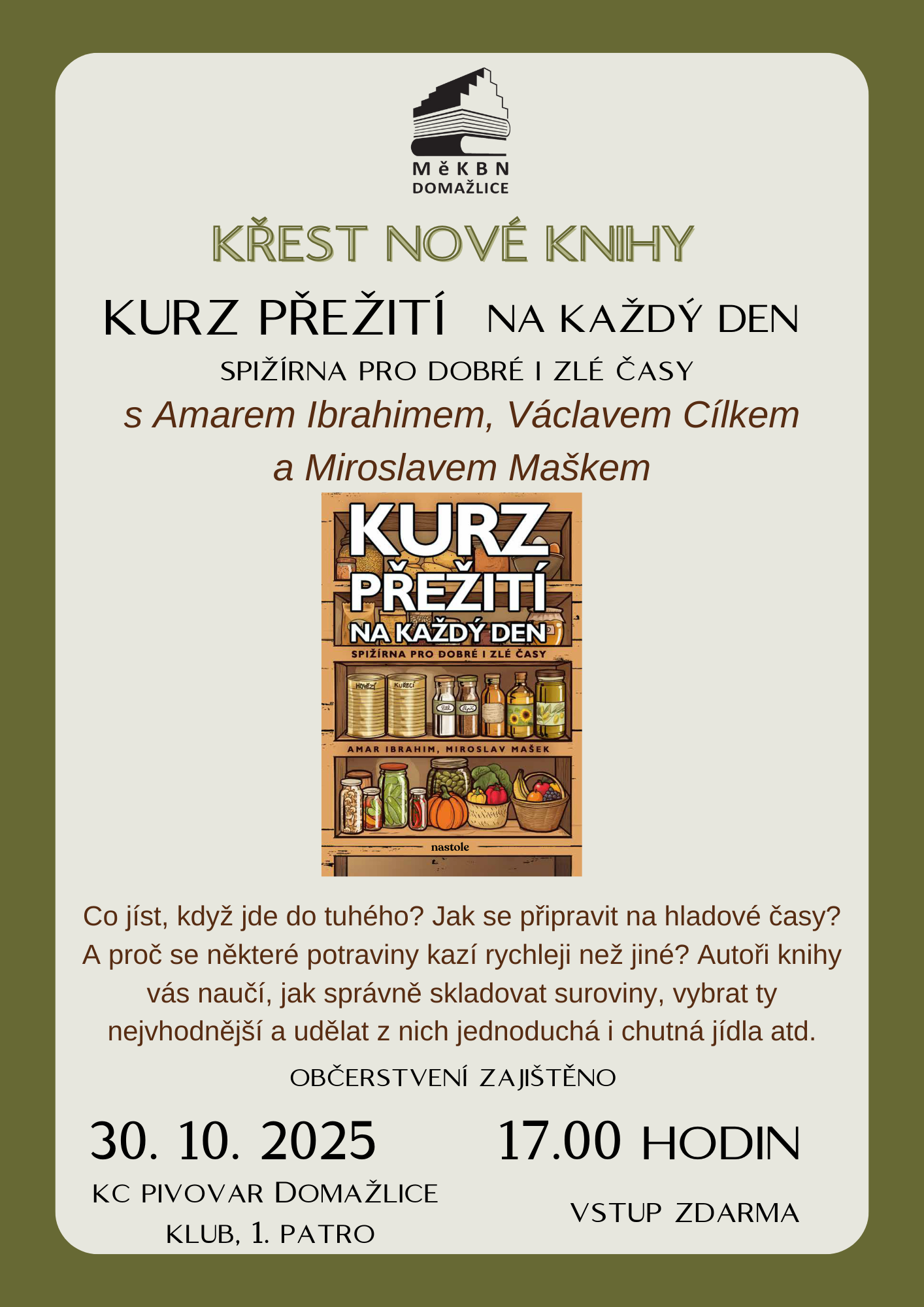 Křest knihy Kurz přežití na každý den – spižírna pro dobré i zlé časy