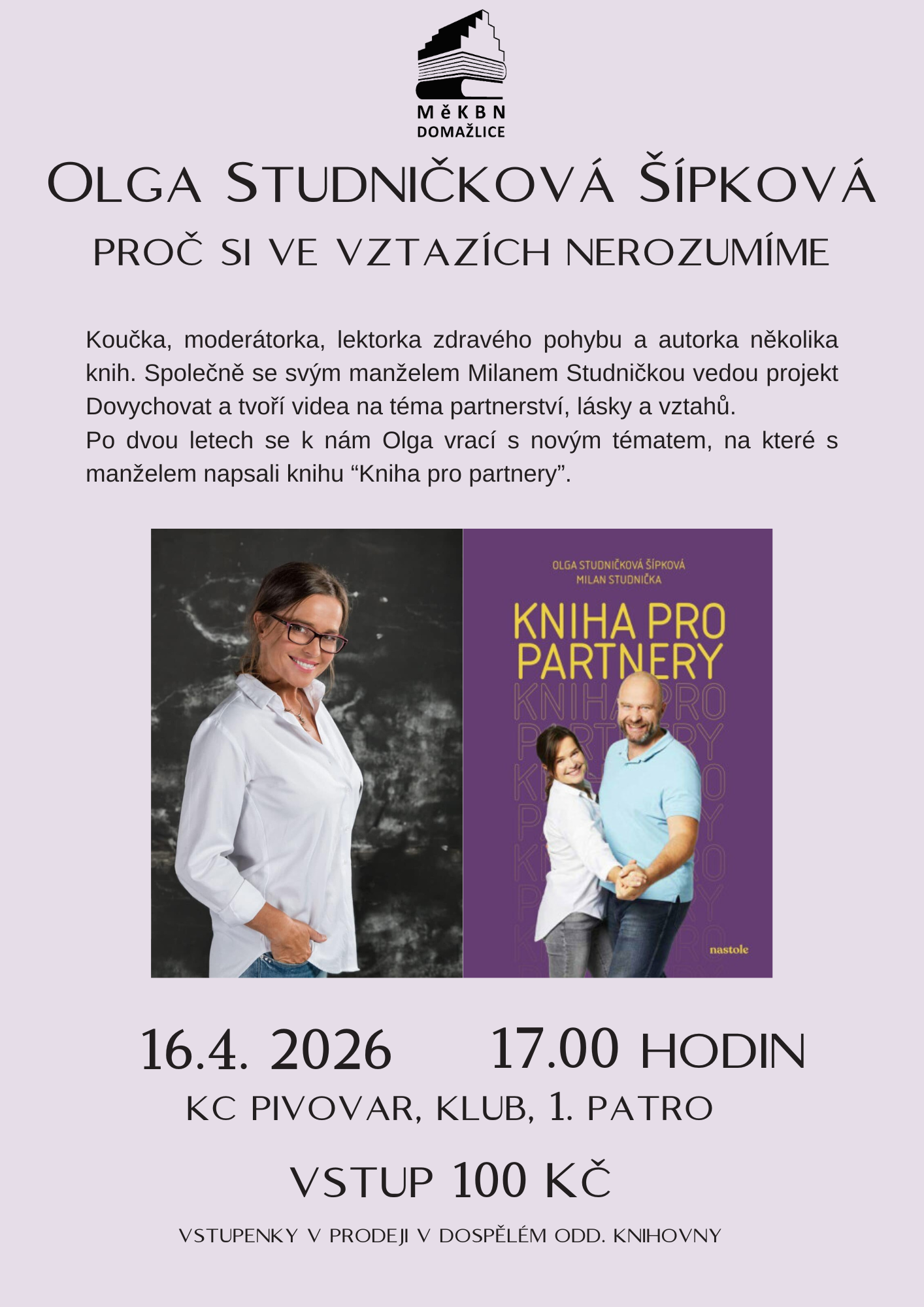 Po dvou letech se k nám Olga vrací s novým tématem, na které s manželem Milanem Studničkou napsali knihu „Kniha pro partnery“. Společně také vedou projekt „Dovychovat“ a tvoří videa na téma partnerství, lásky a vztahů.