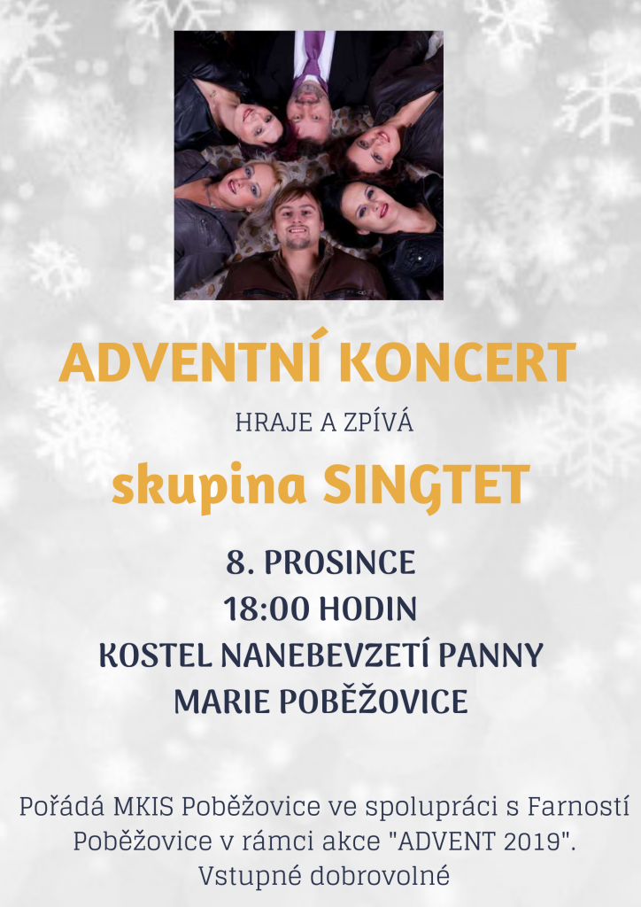 koncert hudební skupiny Singtet z Horšovského Týna. Pořádá MKIS Poběžovice ve spolupráci s Farností Poběžovice.