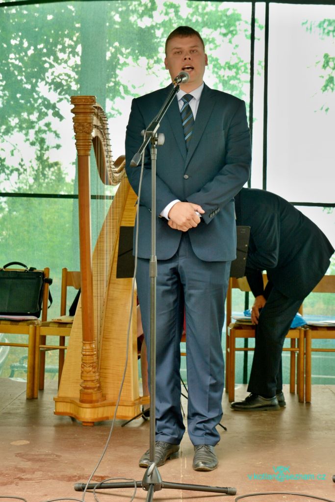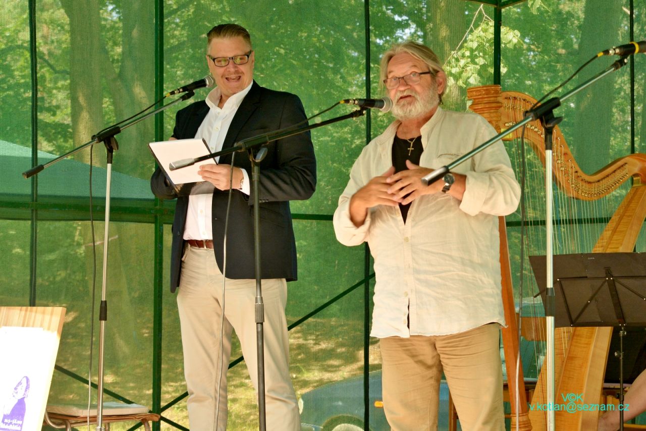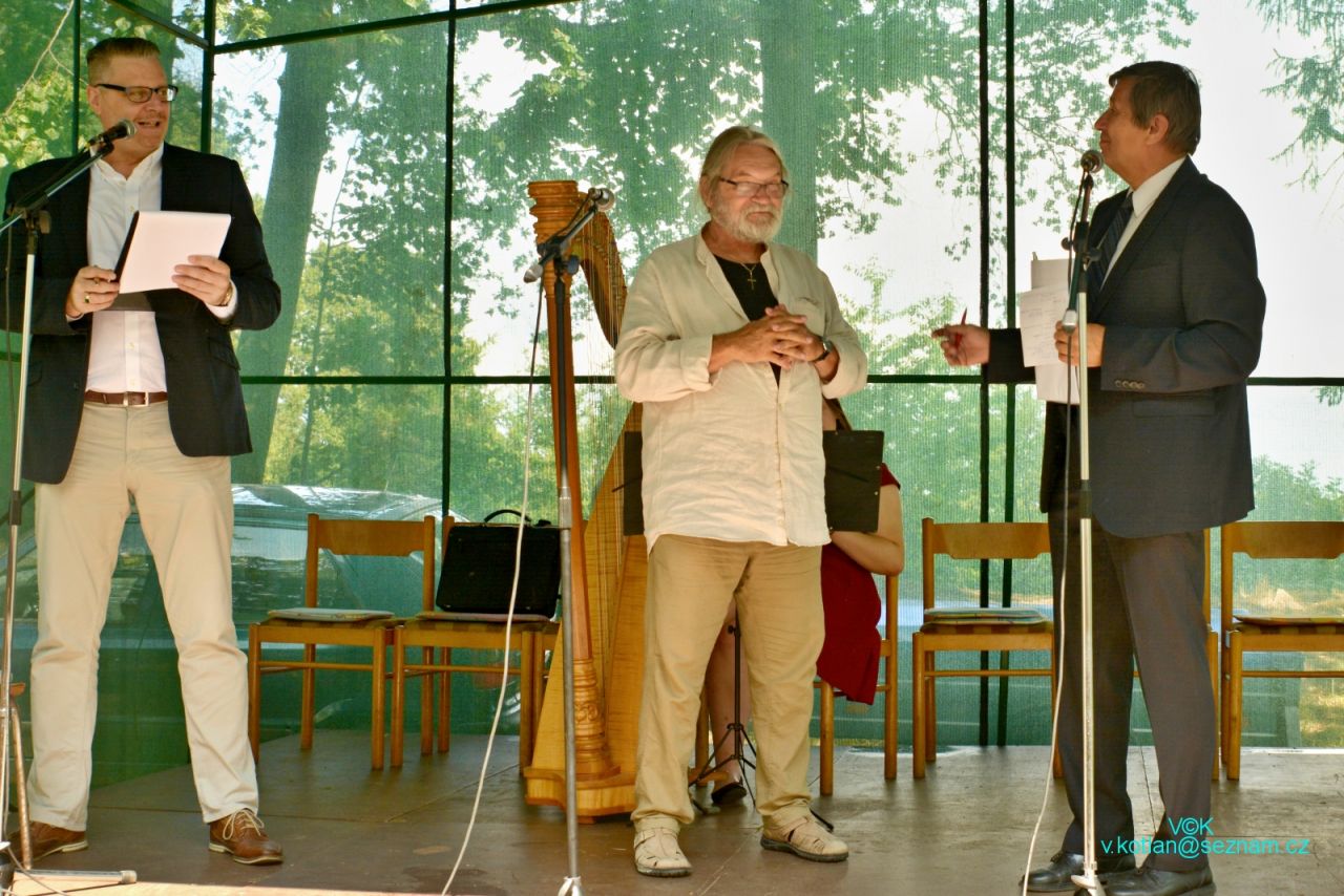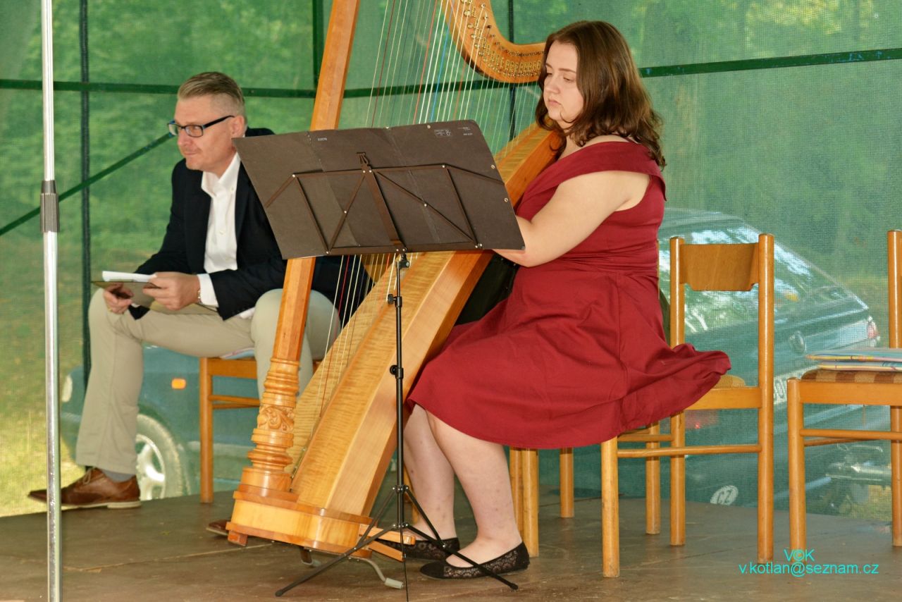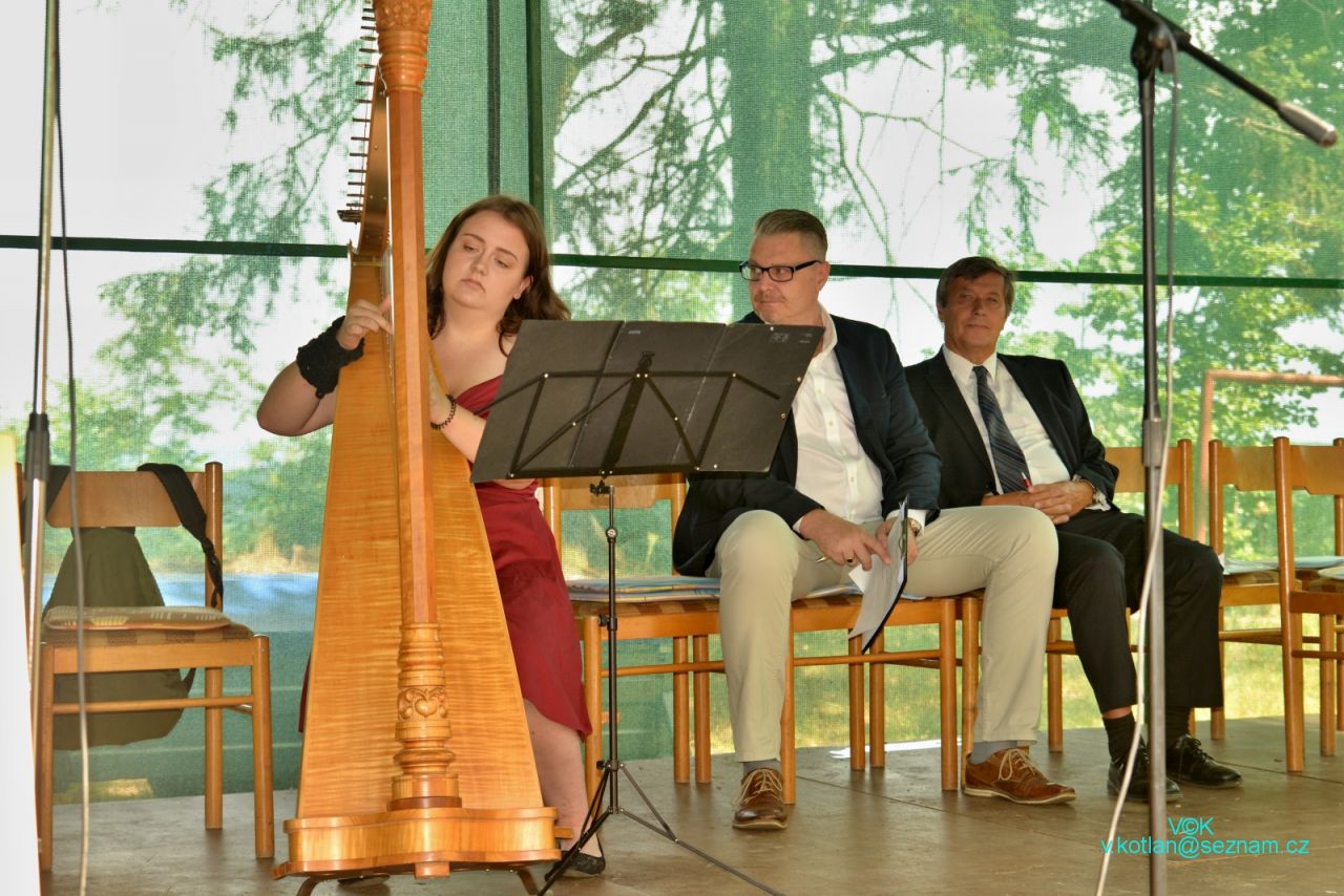 Mluvené slovo bylo vždy vhodně prostřídáváno hudební vložkou, o kterou se postarala německá hudebnice, přednesem několika historických skladeb na trochu nezvyklý nástroj, kterým byla harfa.