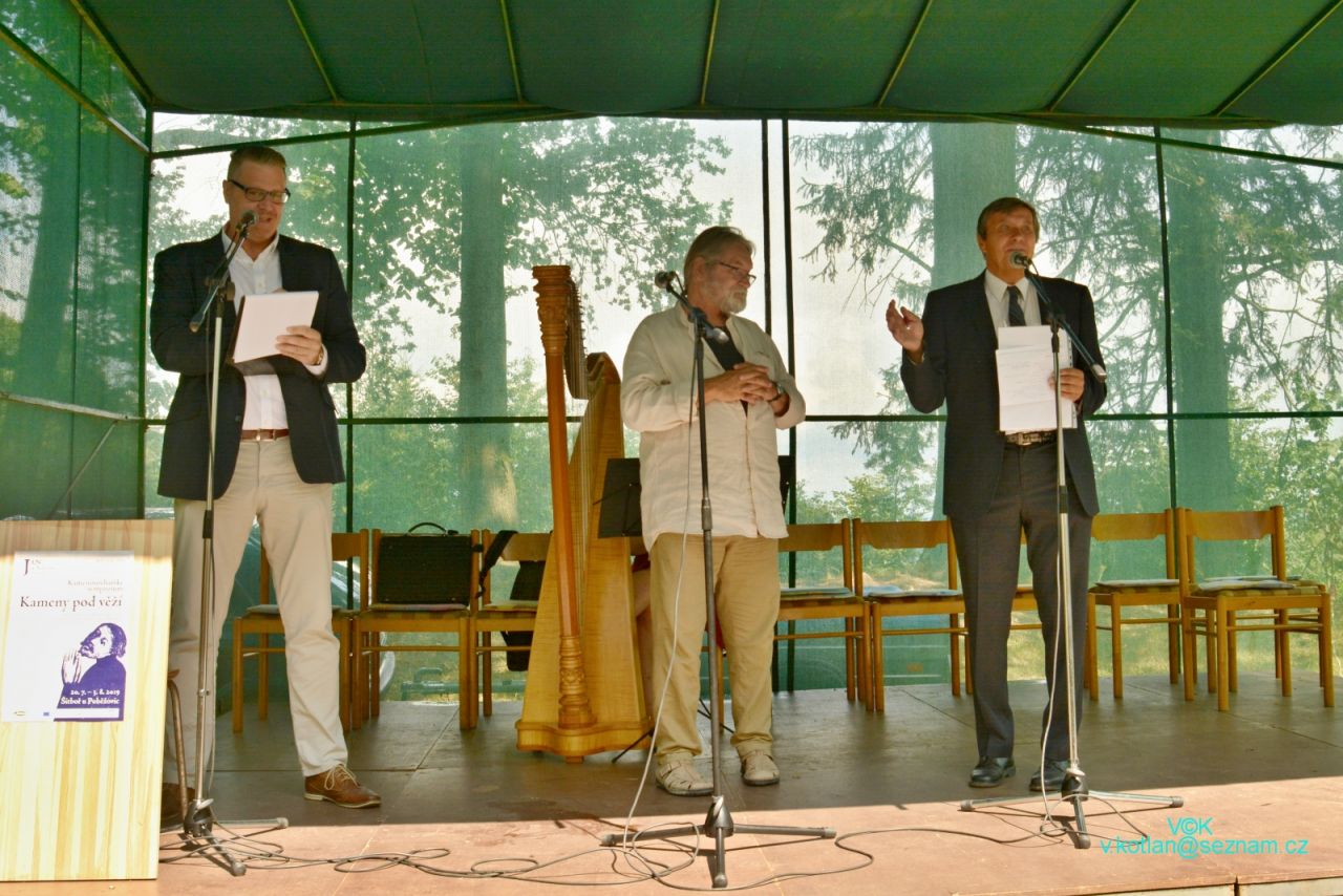 V sobotu 3.8.2019 od 14.00 hodin proběhlo v šitbořském parku slavnostní ukončení kamenosochařského sympozia „Kameny pod věží.“ Akademický malíř Jaroslav Šindelář ze Soukromé střední umělecko-průmyslová školy Na zámečku v Plzni, hlavní iniciátor celé akce, jíž se zúčastnili převážně studenti a absolventi této školy ve svém emotivním projevu, v němž několikrát zdůraznil, že svými kořeny pochází právě ze Šitboře, mimo jiné řekl: „Toto sympozium nebyla profesionální soutěž o tom, kdo bude první, druhej a třetí, ale bylo to setkání lidí, kteří chtějí něco umět, něco ostatním předvést a aby jako citliví umělci podali svědectví, v jakém krásném kraji žijete. Ukázat, že v této krásné krajině žijí krásní lidé… to už je trošku složitější. Příroda ví, jak se má chovat, u lidí je to vždy velká otázka. Lidé mají problém komunikovat, a hlavně nám všem nějak nejde dělat to dobro, že? Zdá se, že někdy ani vlastně nevíme, co to je. Je to nějakých 60 let let, co jsem jezdil do Šitboře na chalupu. Jsem téměř celý život učitel, a tak se stále snažím poučovat. My si myslíme, že stále musíme bojovat s tím zlem, já říkám, že to je ztráta času. Bojovat se zlem, to vlastně znamená přijmout formy toho zla, ne? Nebojujme se zlem, ale tvořme dobro, aby to zlo nemělo místo, kam si sednout. A mnoho času nám, věřte mi, nezbývá…“. Dále pak zdůraznil, jak se dnešní konzumní život společnosti naprosto odvrátil od přírody a jak je důležité k ní opět najít cestu, porozumět jí a naučit se žít v souladu s ní tak, abychom jí zbytečně neubližovali. Vše, co jsme a co máme je nám dáno skrze přírodu a my jí za to musíme dokázat projevit svou vděčnost.