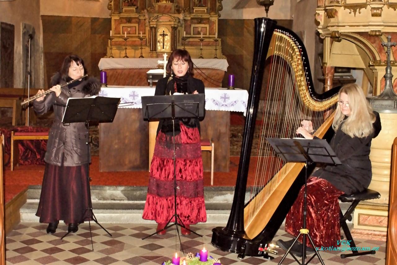 V nedělní podvečer 15. prosince se na pět desítek posluchačů sešlo, aby si v poběžovickém kostele Nanebevzetí Panny Marie vyslechli ženské trio Musica dolce vita. Program, ve kterém učinkovaly Daniela Demuthová (zpěv, mezzosoprán), Michalea Valentová (flétna) a Zbyňka Šolcová (harfa) nesl název Adventní kalendář. Sestával z 24 hudebních děl, která posluchačům připomněla hudbu z nejstarších sbírek 14. a 15. stol. (Jistebnický kancionál), dále pak první umělé adventní písně (A. Michna) a nakonec zazněly skladby nejznámějších barokních a klasicistních romantických skladatelů. Mezi nimi nechybělo i několik sólových, napsaných a pefektně přednesených na harfu, či flétnu. Před Vánocemi to bylo další milé pohlazení po duši hudbymilovných občanů.