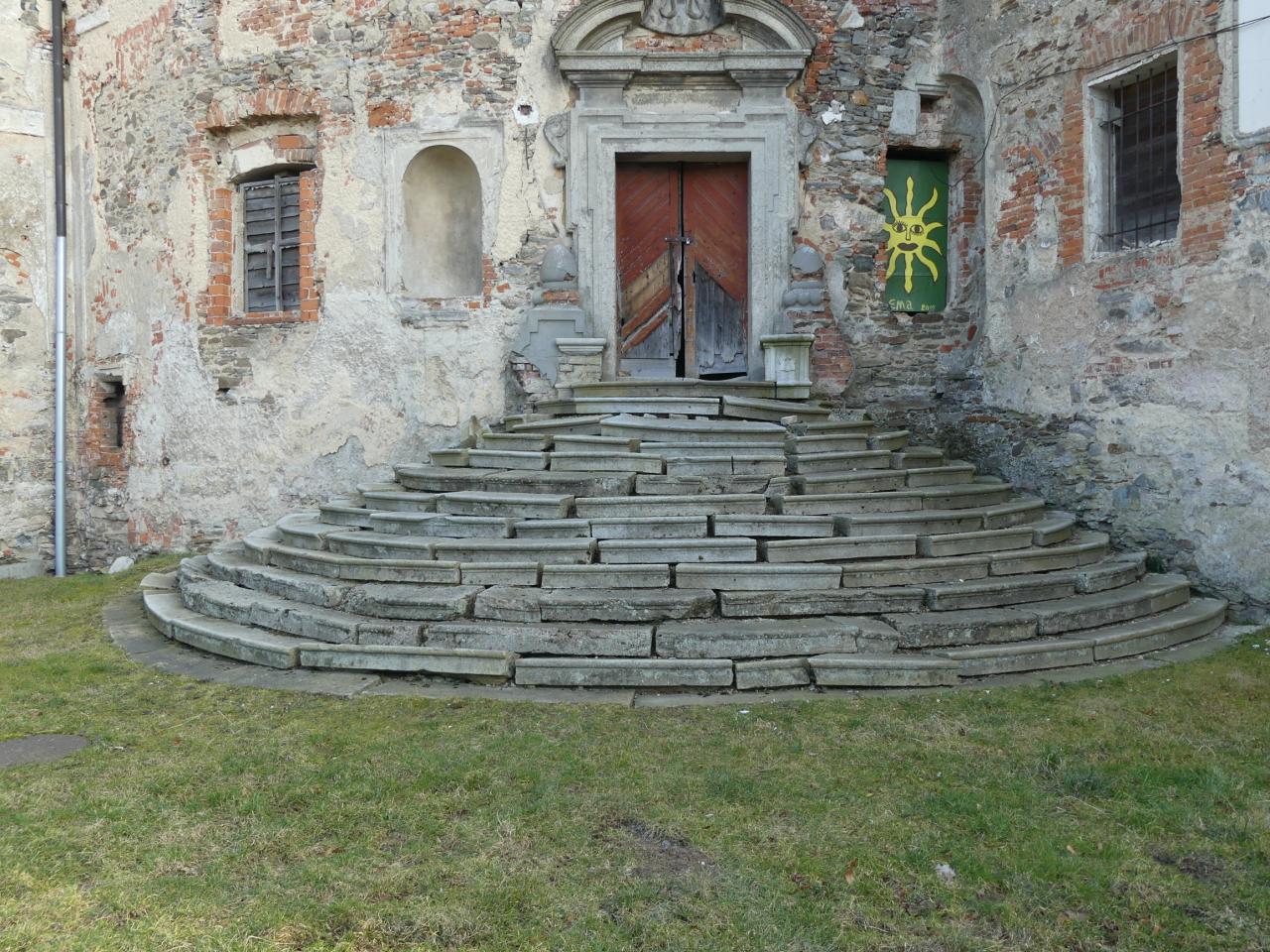Projekt počítá s kompletní rekonstrukcí hlavního zámeckého obloukového schodiště, které tvoří největší dominantu západního křídla historické zámecké budovy a které se v současné době nalézá v havarijním stavu. Schodiště o výměře 145 mb bude po zaměření a po zakreslení kamenných stupňů demontováno a bezpečně uskladněno v rámci areálu. Dojde k úpravě podkladů a následnému osazení, očištění a spárování schodišťových stupňů. Rekonstrukce se dočkají i postranní zídky na horní podestě, kdy dojde k jejich demontáži, k následnému restaurování a osazení zpět na původní místo.