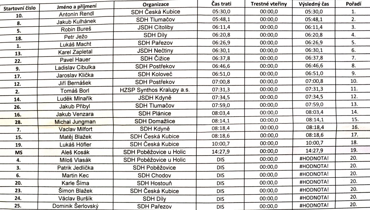 Počasí bylo ideálně slunečné, o dobré jídlo a pití se starali místní hasiči na výbornou a organizačně vše šlapalo jako hodinky. Moderování se stejně jako v minulém roce ujal velitel místní JPO II Petr Vejvančický a úkolu se zhostil na výbornou, takže celá akce dopadla super a všichni, kdo přiložili ruku k dílu, včetně samotných závodníků zaslouží obrovskou pochvalu a poděkování.