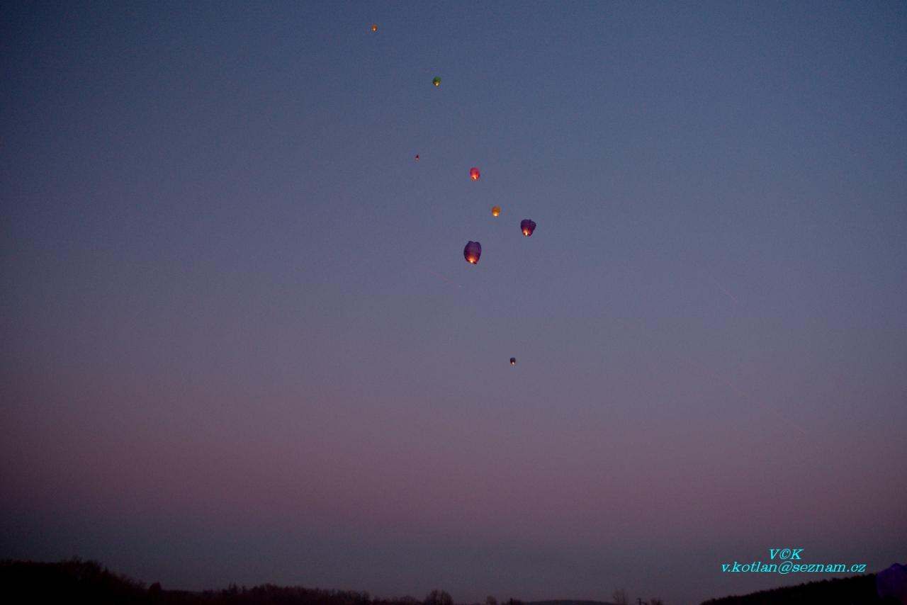 Následoval přesun účastníků na stanoviště s voňavým svařákem, gulášem a připravenými lampionky štěstí. Jejich barevná světélka zanedlouho zaplnila východní část oblohy a nesla přání svých "stvořiltelů" kamsi do dáli...