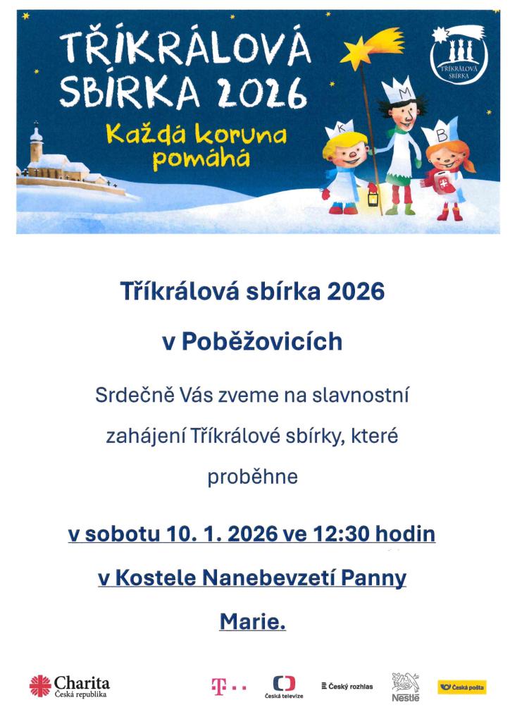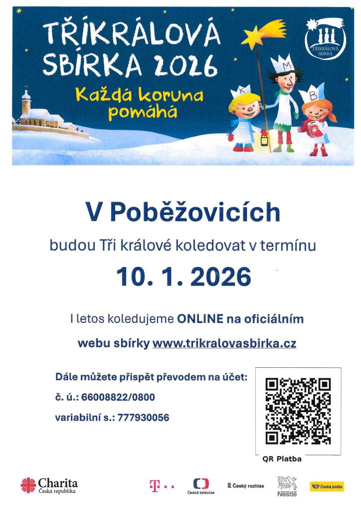 V Pobežovicích se uskuteční Tříkrálová sbírka v sobotu 10. ledna 2026.